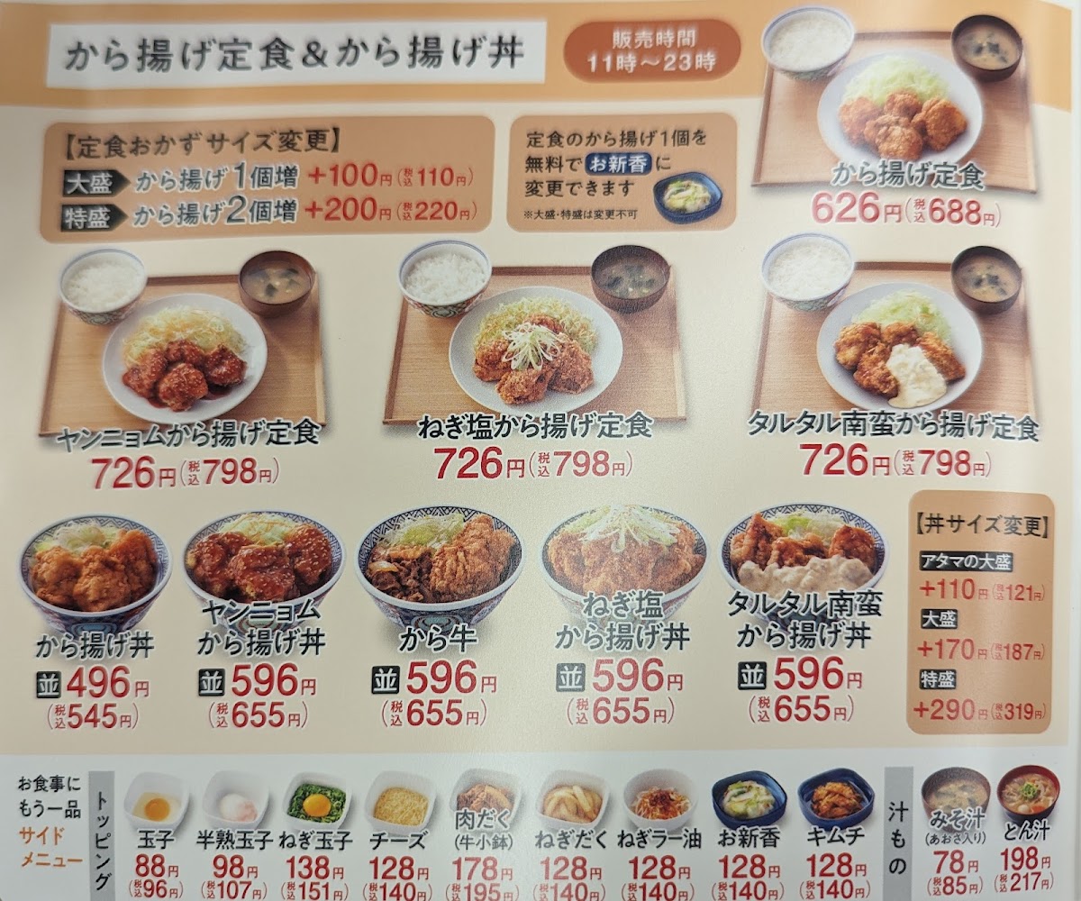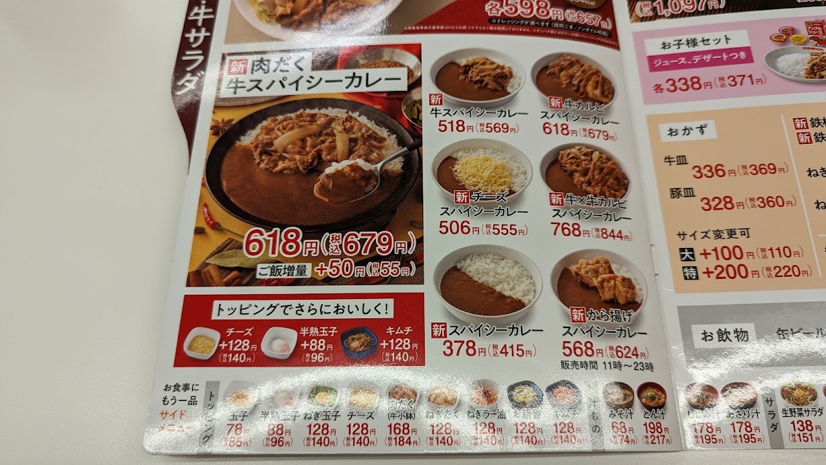 At Yoshinoya Sagamihara, the menu comes together as a well-balanced snapshot of what the brand does best: hearty rice bowls, comforting set meals, and rich Japanese flavors designed for everyday dining. Signature beef bowls anchor the experience, with options like 牛丼小盛り&肉増し&サラダセット 豚汁 offering flexibility in portion size while emphasizing tender beef, savory sauce, and a satisfying miso-based pork soup. For diners seeking a more traditional hot-meal feel, 牛鍋すき焼き定食 and 牛すき鍋 deliver warmth and depth through sweet-salty sukiyaki seasoning, pairing beef with vegetables in a style that feels both nostalgic and filling. Curry lovers are well served by 牛白カレー and チーズカレー大盛り, where creamy curry bases and generous portions create a rich, indulgent contrast to the lighter rice bowls. The menu also expands beyond beef with items like 豚丼 and 焼き肉, adding variety through different cuts and grilling styles, while 牛カルビ highlights a more robust, grilled-beef profile. For something with a comforting, soup-forward character, 牛キムチクッパ stands out with its spicy, warming broth, balancing beef and kimchi for a bold flavor. Seafood makes a notable appearance through うなぎ, offering a slightly upscale option with its sweet, glazed eel over rice. Set meals such as 唐揚げ定食 豚汁変更 and 牛皿麦とろ御膳 豚汁変更 emphasize balance, combining protein, rice, and soup into complete, satisfying combinations. Dishes like ハヤシライス add a Western-Japanese touch with their demi-glace-inspired sauce, while 焦がしねぎ焼き鳥丼サラダセット introduces smoky notes and freshness through charred scallions and salad. Finally, bold, filling options like スタミナ超特盛丼 reinforce the menu’s value-driven approach, rounding out a lineup that feels consistent, generous, and thoughtfully varied without straying from Yoshinoya’s core identity.